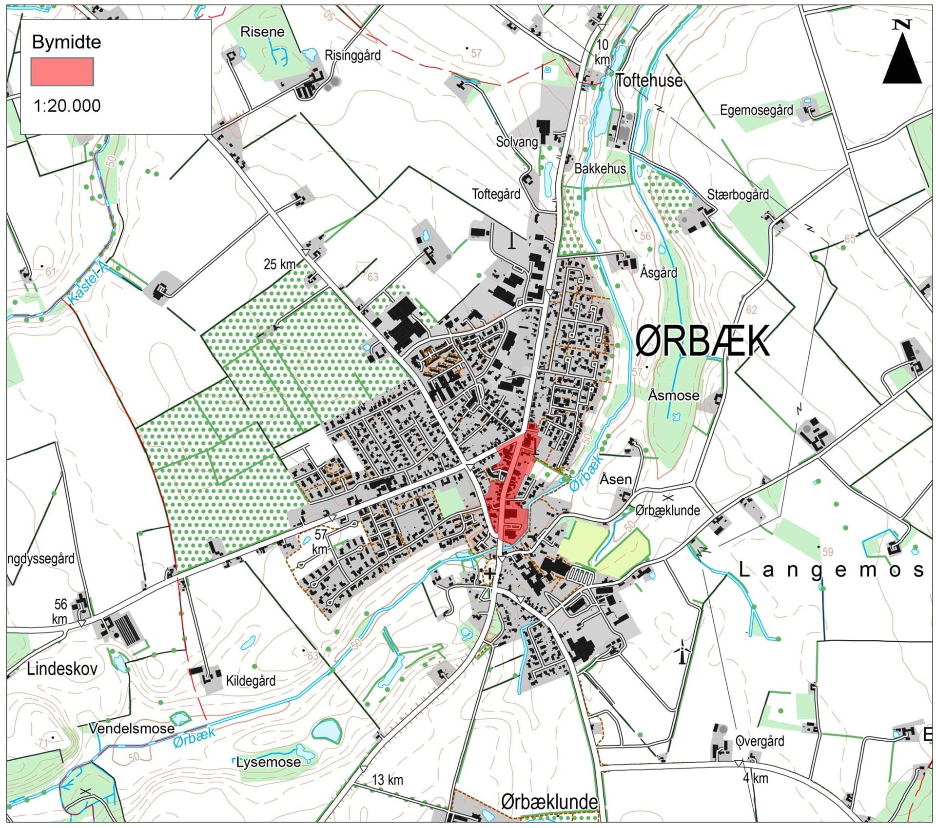 - I Ørbæk er bymidteafgrænsningen fastlagt til områderne langs Hovedgaden og byens dagligvarebutikker.