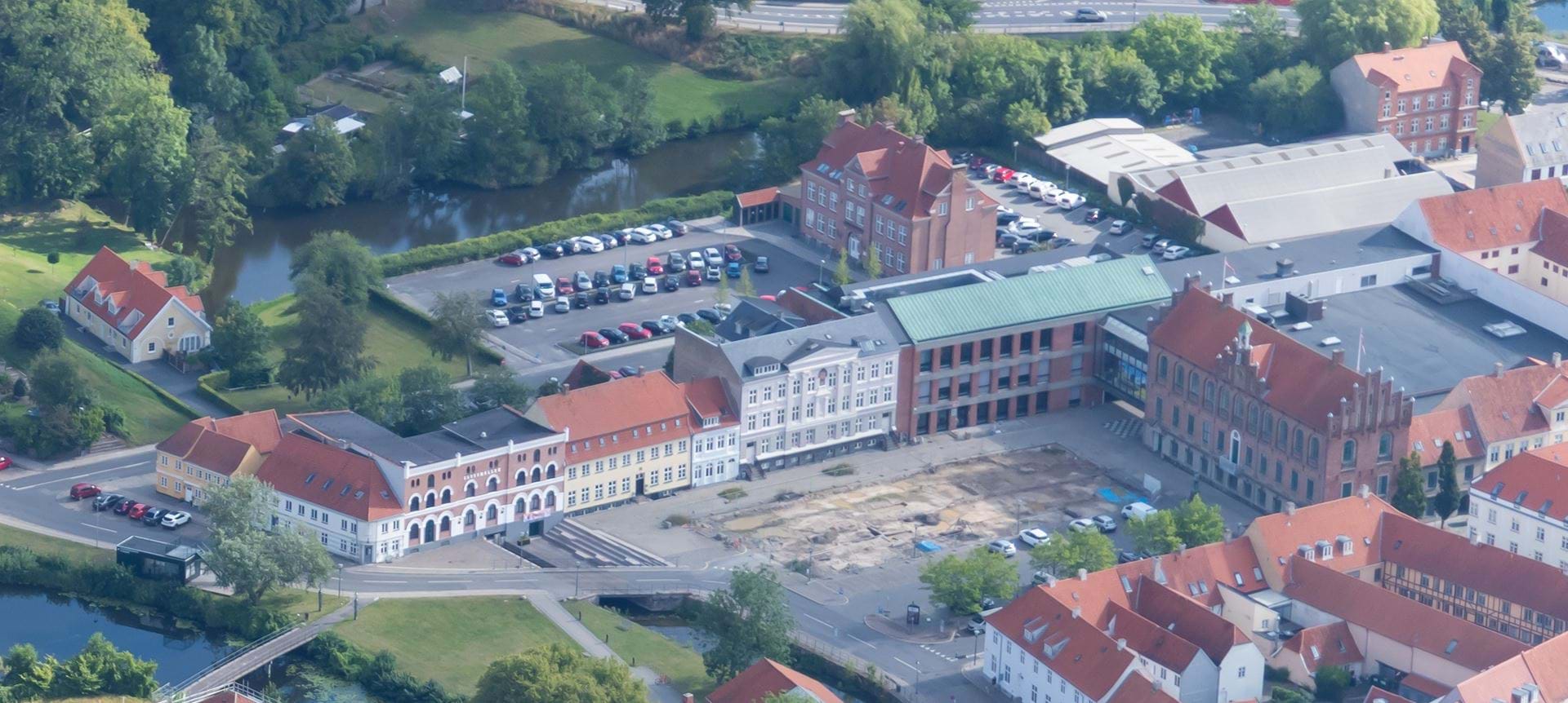 Billede: Facaderækken langs den nordlige side af Torvet, samt facader langs sydlige del af Stendamsgade, foreslås med dette tillæg inddraget i bykernen. Herefter vil der kunne planlægges for bymidteerhverv, herunder butikker på disse ejendomme. Rådhuset, herunder den del der rummer Visit Nyborg har også hidtil været en del af den afgrænsede bymidte.