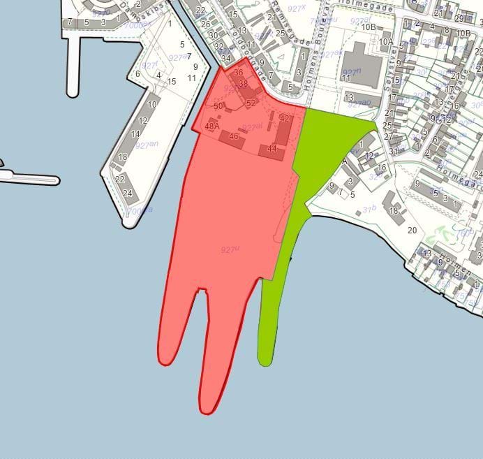 Planlægningen understøtter derudover principperne i helhedsplanen for de gamle DSB-arealer, der ligeledes arbejder med at skabe fri adgang til vandet hele vejen rundt om et kommende byområde, samt at øremærke Yderpierens østligste mole til rekreative formål. Se illustration fra DSBs helhedsplan herunder.