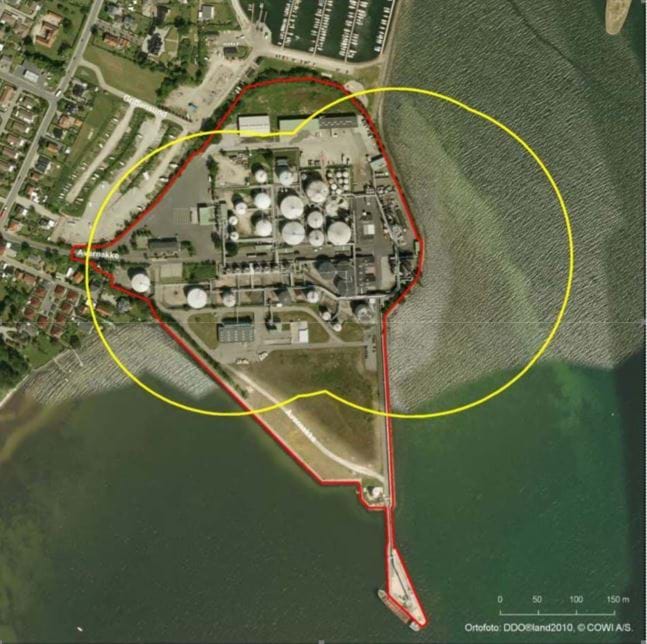 Miljøstyrelsen bemærker følgende: I forbindelse med Miljøstyrelsens afgørelse om accept af virksomhedens sikkerhedsniveau af 23. januar 2015, blev der fastlagt en planlægningszone omkring virksomheden, se figur 1. Planlægningszonen er baseret på den maksimale konsekvensafstand, defineret som den største afstand, hvortil det værst mulige uheld på virksomheden vil kunne udbrede sig med en koncentration, der potentielt kan forårsage dødsfald. Dette forudsætter, at alle barrierer svigter.