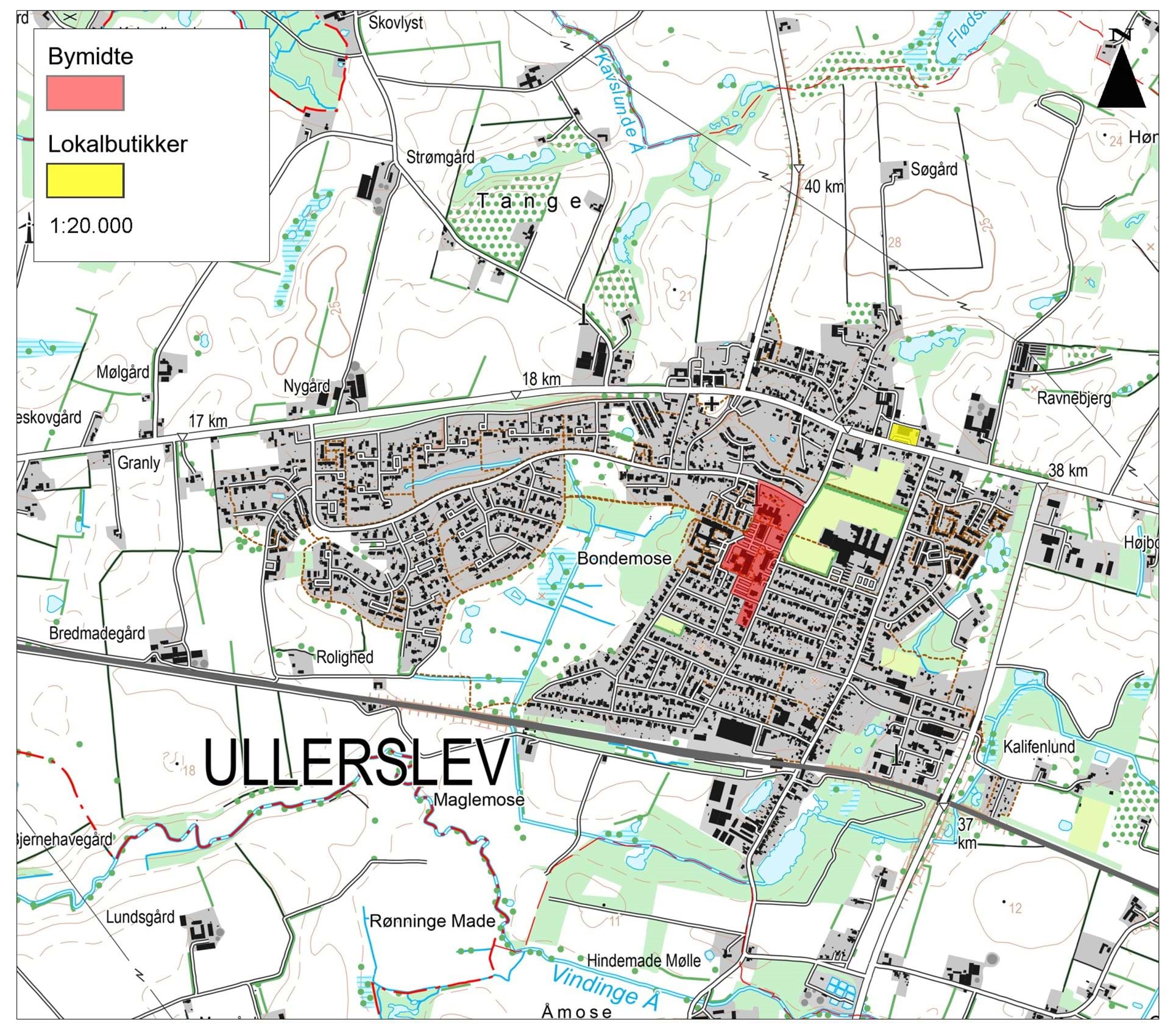 - Bymidteafgrænsningen i Ullerslev omfatter Ullerslev Centret samt arealet omkring Ullerslevs gamle rådhus.