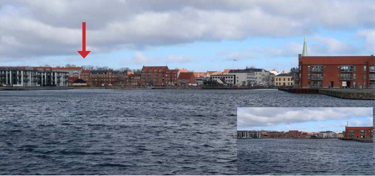 Topografien og byområdet imellem kysten og rammeområdet bevirker ydermere, at byggeri med de højder, der er fastsat i rammen, vil medføre en uvæsentlig visuel påvirkning af kystlandskabet. Se visualisering på figuren herunder.