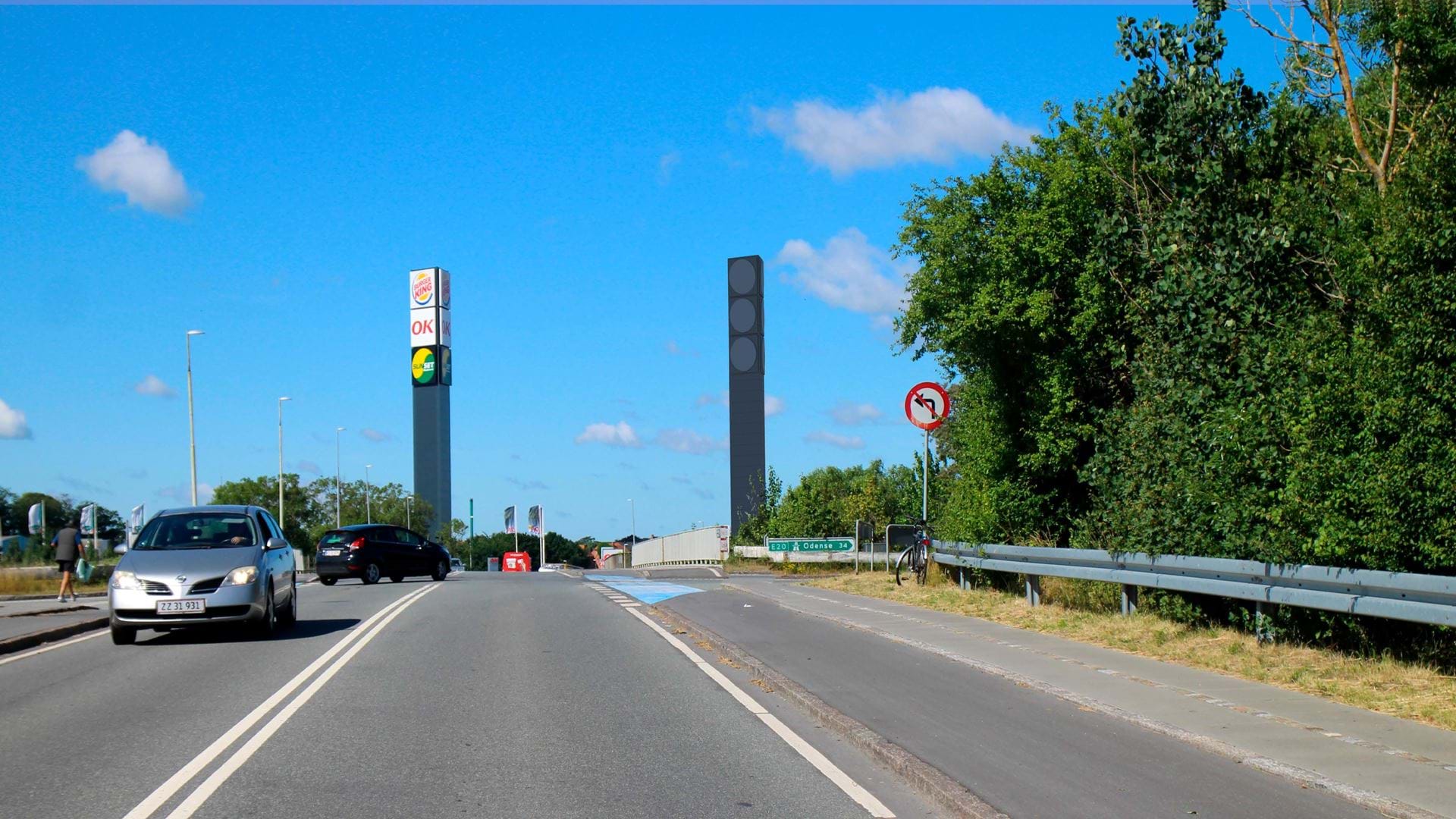 En pylon på op til ca. 36 meter vil kunne ses fra Storebæltskysten, der ligger ca. 500 meter øst for lokalplanområdet. Det er også tilfældet med den eksisterende pylon på 35 meter, der står umiddelbart syd for Storebæltsvej under 100 meter fra den planlagte pylon. Den eksisterende pylon kan ses på nedenstående billede. Den planlagte pylon vil nå en sammenlignelig højde og stikke op lige til højre for den eksisterende pylon.